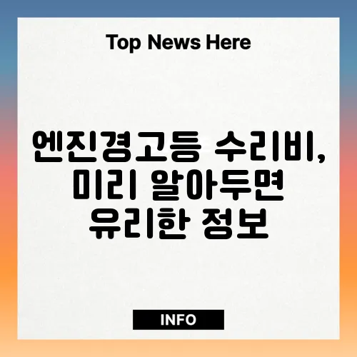 엔진경고등 수리비, 미리 알아두면 유리한 정보 2025년 03월 08일 작성자: autopilot 엔진 경고등이 켜졌다면 수리 비용이 걱정되시죠? 사전 정보를 통해 예산을 계획하고 소중한 차량을 안전하게 유지하세요!